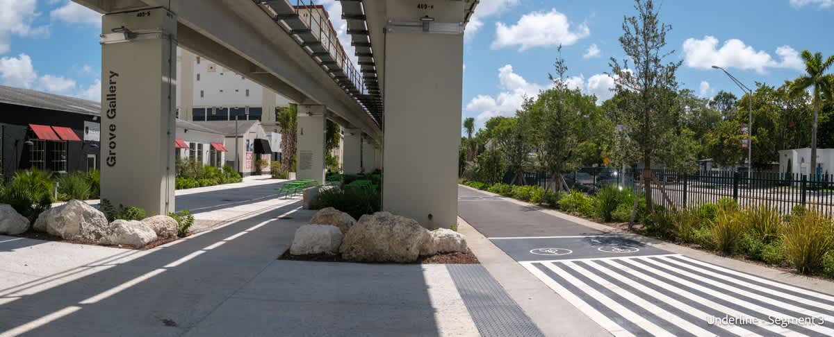 The Underline is Miami’s 10-mile linear park and urban trail running below the Metrorail line. Phase 3 of The Underline is a 7.36-mile segment that connects SW 19th Ave near the Vizcaya Metrorail station to the Dadeland South Metrorail station. The entire segment links various communities including City of Miami, Coral Gables, South Miami, and Unincorporated Miami-Dade County. Phase 3 will be built on three key drivers: safe multi-modal transportation, nature, and community.